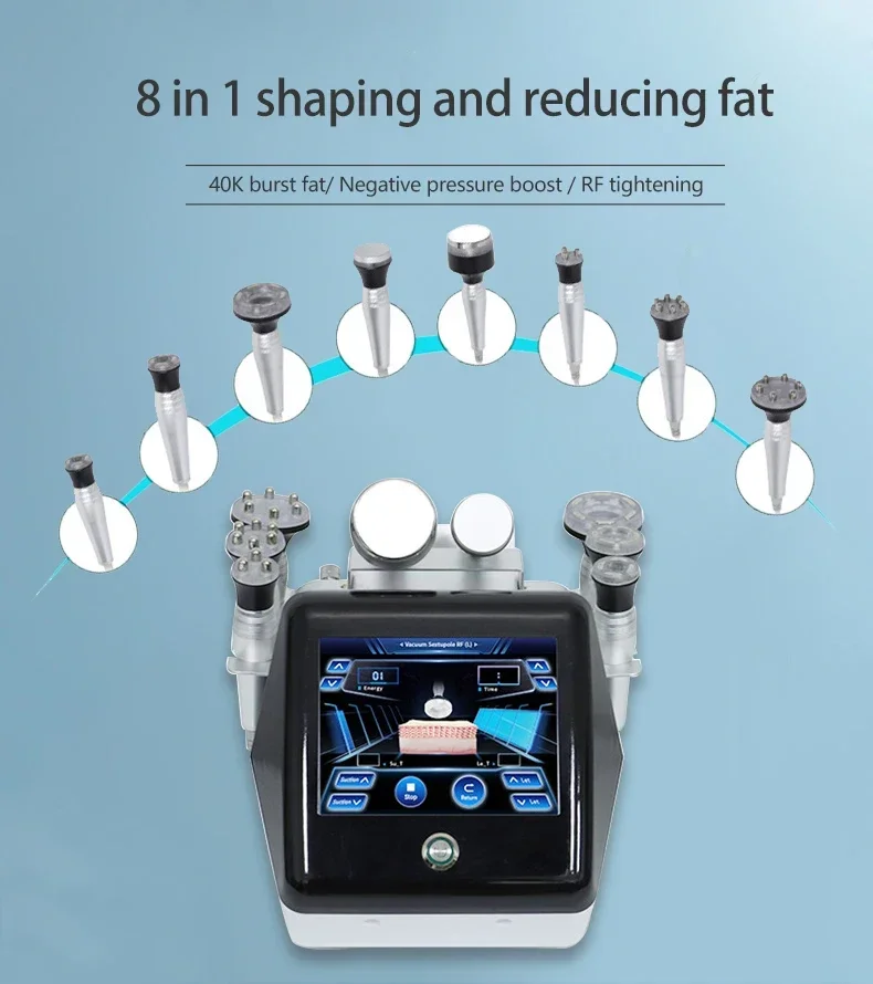 All in one Fat cavitation & Rf skin tightening machine with lymphatic drainage. Clinic grade machine with touch screen interface.